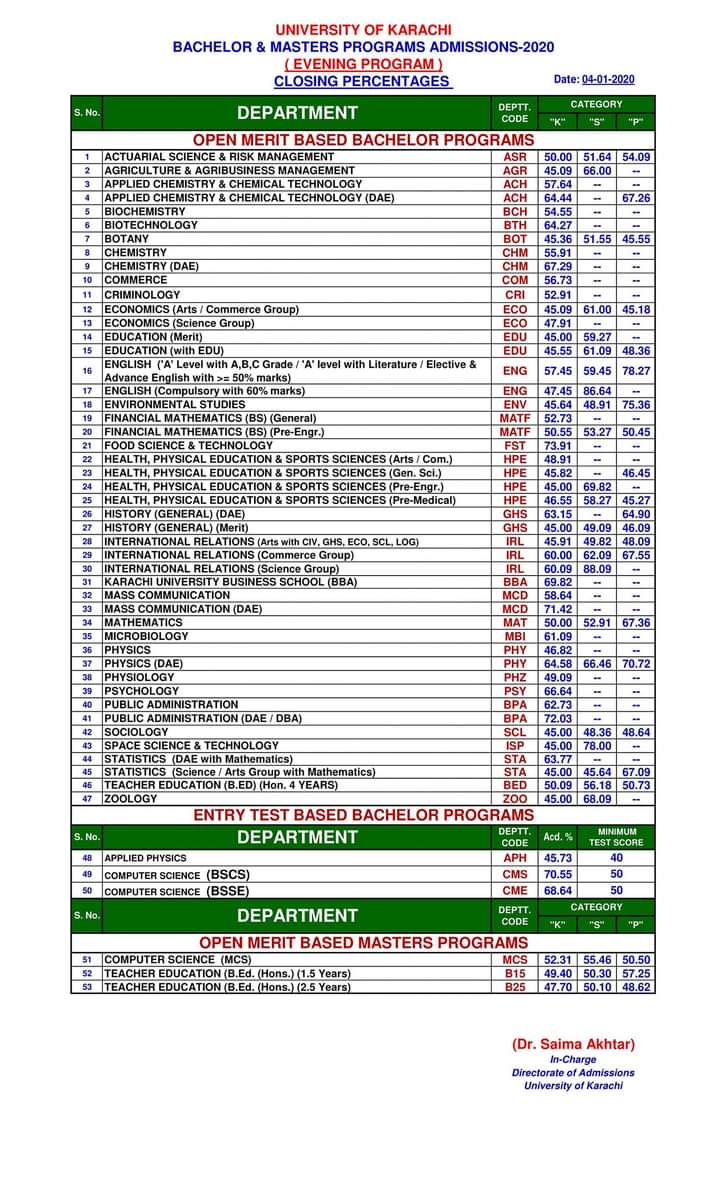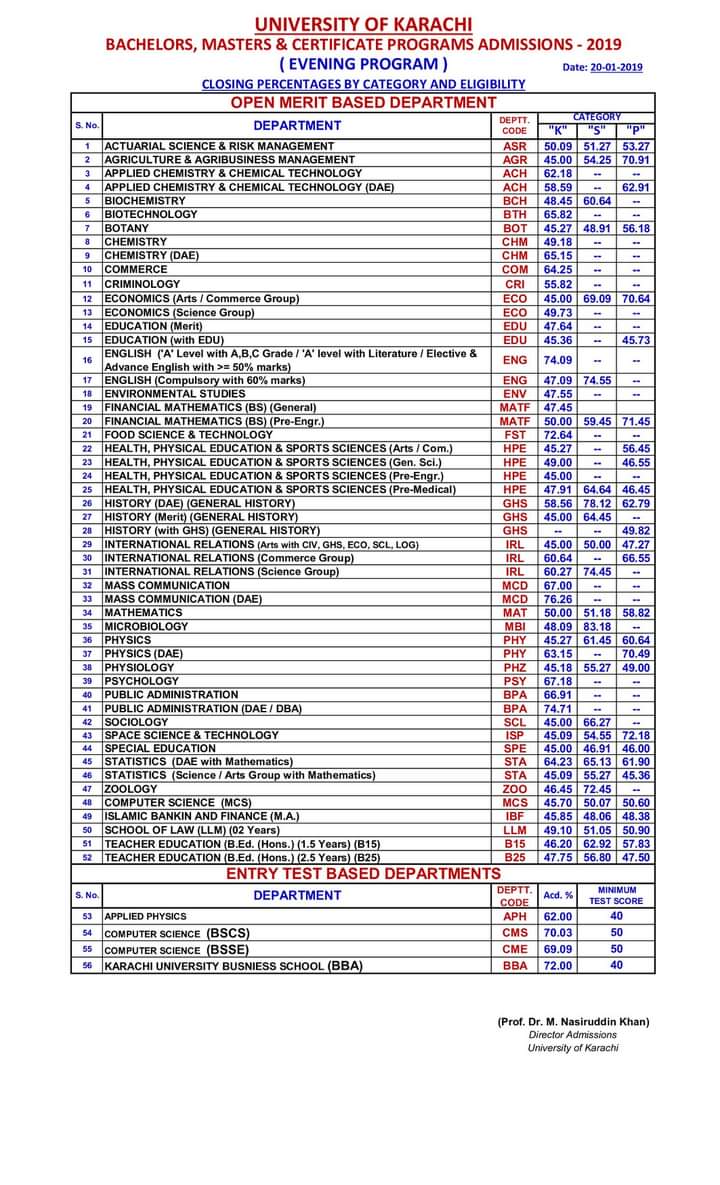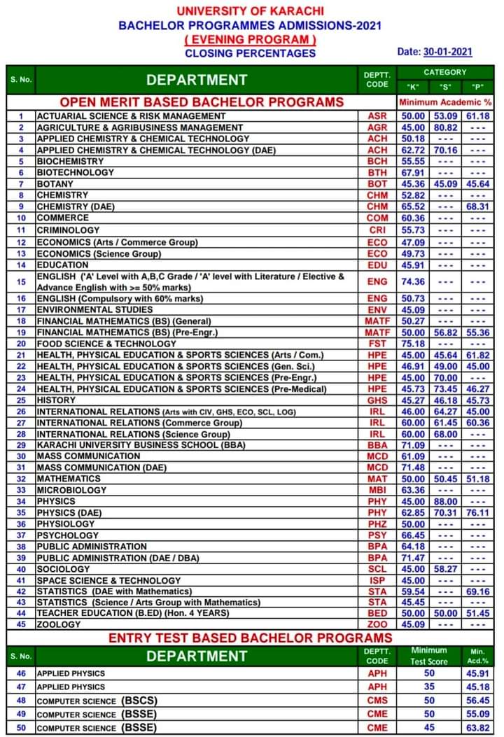 Closing Percentages of Bachelors & Masters Programs 2021 (Evening) Closing Percentages of Bachelors & Masters Programs 2020 (Evening) Closing Percentages of Bachelors & Masters Programs 2019 (Evening) Visited 71 times, 1 visit(s) today